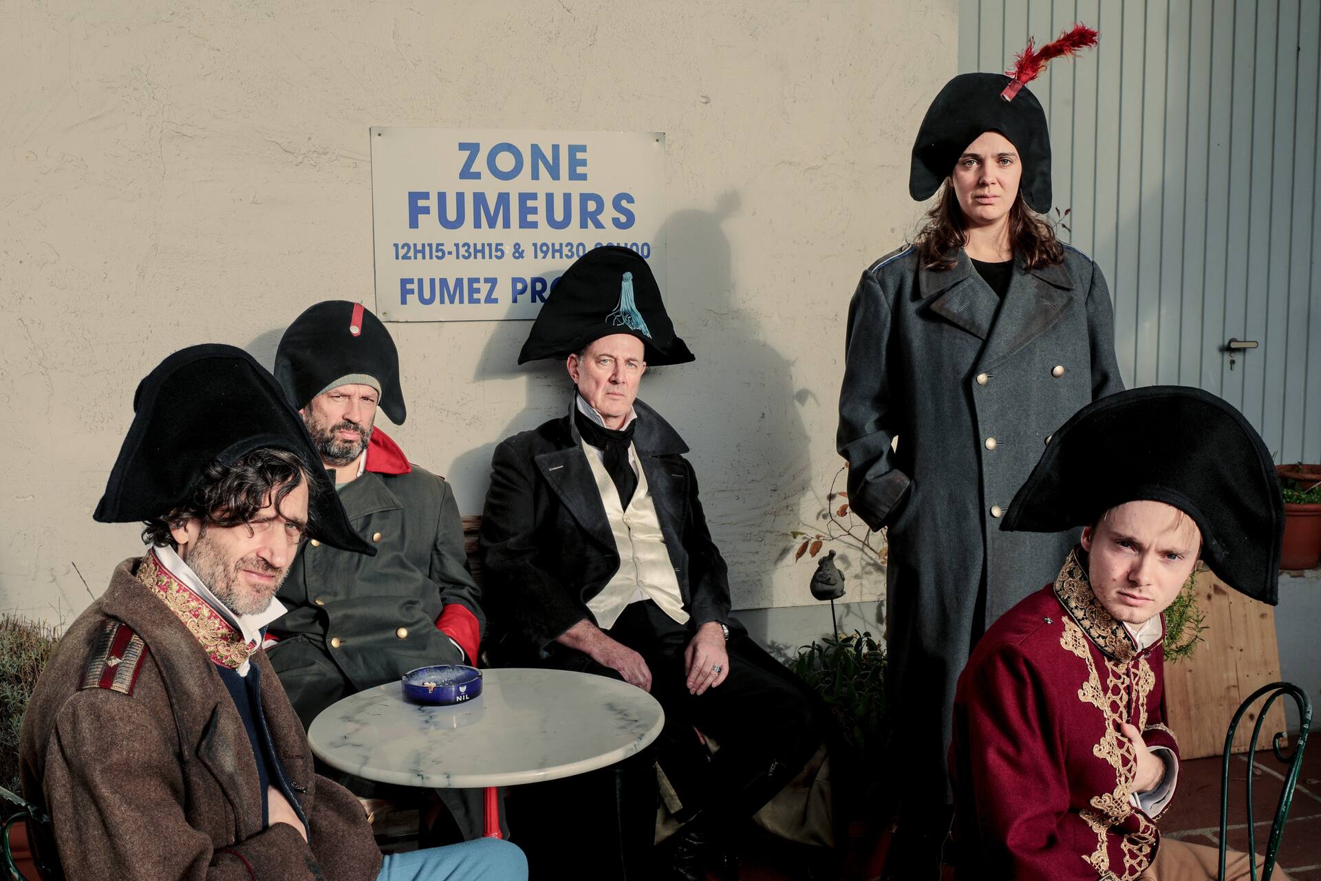 Eben nicht – jedenfalls ist das der Ansatz von Regisseur und Autor Armin Petras. Nicht nur eine Bühnenfigur, sondern gleich fünf. Fünf Schauspieler*innen spielen Napoleon in fünf Teilen, die jeweils für einen Abschnitt seiner Biographie stehen: Der junge Korse, der Soldat wird und nach Paris gelangt. Sein steiler militärischer Aufstieg bis zur Kaiserkrönung. Der Russlandfeldzug. Verbannung, Rückkehr und erneute Niederlage bei Waterloo. Schließlich die letzten Jahre in der Verbannung auf St. Helena.